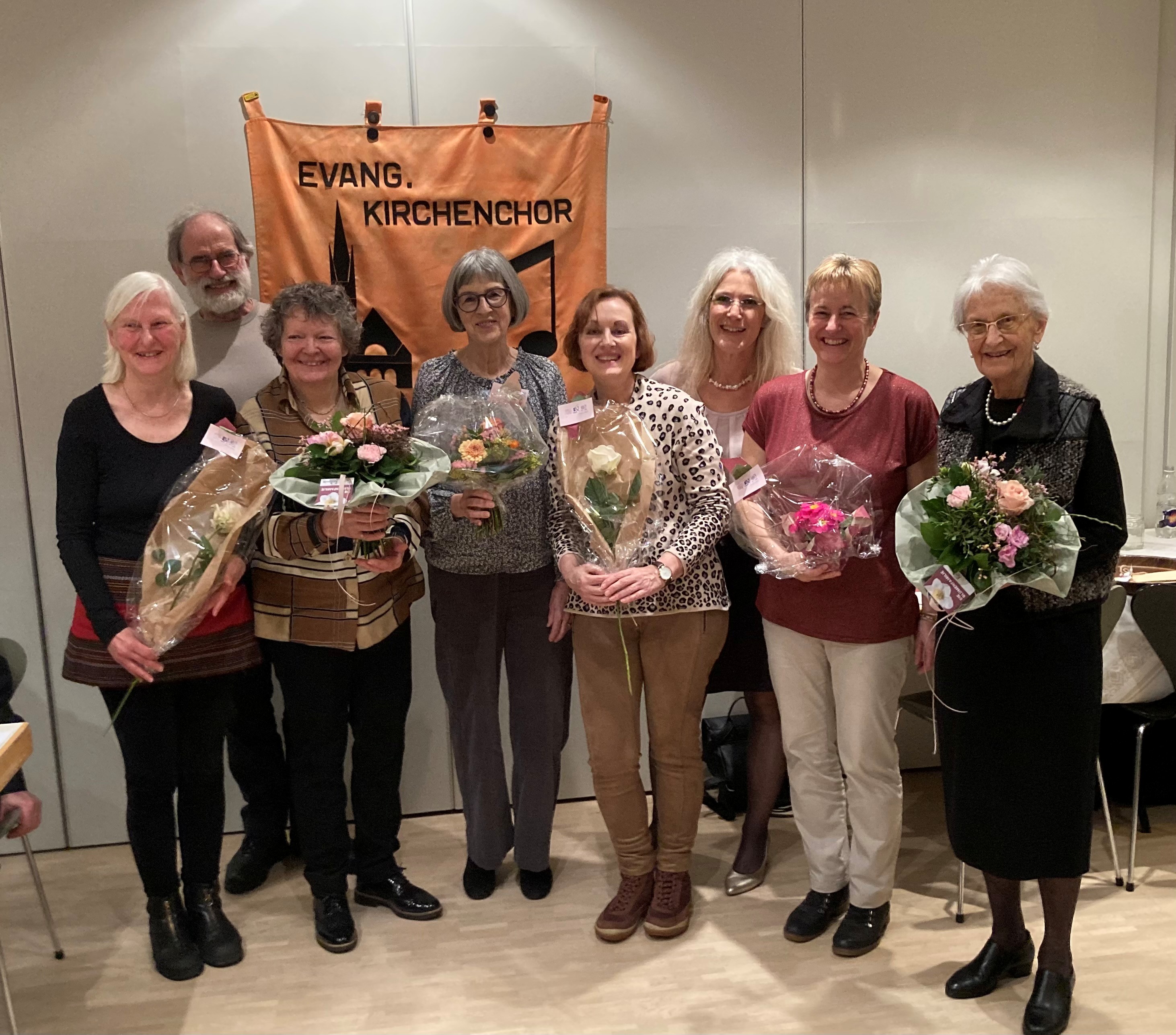 Ein weiteres Highlight die dankbare Anerkennung des 20-jährigen Engagements zum Ehrenmitglied Petra Berweger. Ein spezieller Moment bildete auch die Verdankung der langjährigen Mitwirkung im Vorstand von Nelly Meier (über 20 Jahre) und Brigitte Schindler für die letztjährigen 19 Jahre. Ein riesiger Applaus ua umrundete die Verabschiedung. Erfreulicherweise bleibt uns N. Meier noch im Chor bei 73-jähriger Mitgliedschaft erhalten!